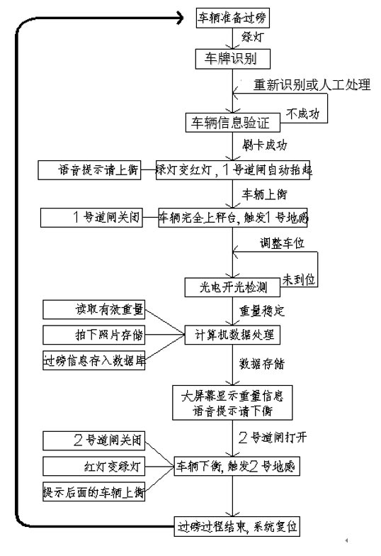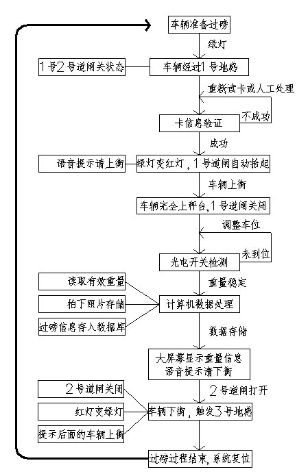 RFID卡自動稱重系統自動識別車輛車牌號碼,方便快捷。要求:場內對車輛管理較嚴格,車牌的完整度和清潔度。過磅原理流程如下: