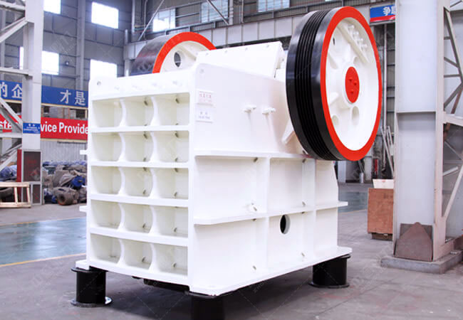 電機帶動皮帶跟皮帶輪,通過偏心軸讓動顎進行上下運動,當(dāng)動顎上升的時候,肘板會和動顎之間的夾角變大,從而推動動顎板往固定顎板接近,同時其中的物料會被壓碎或劈碎,達到破碎的目的,當(dāng)動顎下行時,肘板和動顎之間的夾角會變小,動顎板在拉桿、彈簧的作用下 ,離開固定顎板,同時已經(jīng)破碎的物料從排料口排出。
