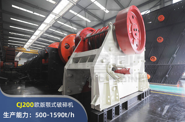 CJ200顎式破碎機進料口尺寸2000×1500mm,進料粒度1200mm,出料大小175-300mm,電機功率400kw,時產可達1590噸,屬于中型鄂破。