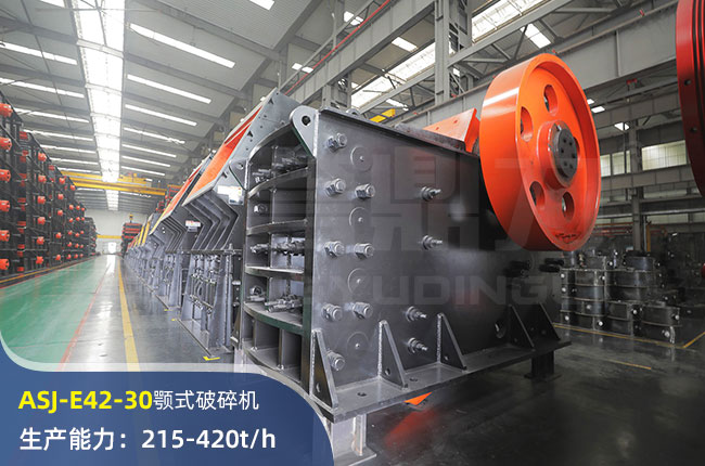 ASJ-E42-30顎式破碎機進料口尺寸1070×760mm,進料粒度≤500mm,出料大小≤100mm,電機功率110kw,時產(chǎn)量在420左右。