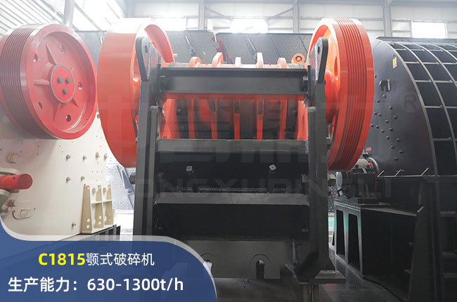 C1815顎式破碎機(jī)屬于時(shí)產(chǎn)630-1300噸的中型鄂破,可破碎出粒度大小在125mm左右的物料,電機(jī)功率355kw,是一款產(chǎn)量比較大的設(shè)備了,一般運(yùn)用在生產(chǎn)線的一破上,效率高,