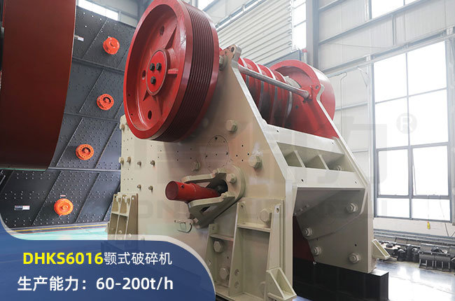 DHKS6016顎式破碎機(jī)進(jìn)料口尺寸1500×400mm,進(jìn)料粒度320mm,出料大小25-90mm,電機(jī)功率90kw,時(shí)產(chǎn)在200噸左右。