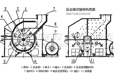 反擊式錘式破碎機設備主要是由錘頭、機殼、轉子、反擊板、配套電機等組成,其工作原理如下: