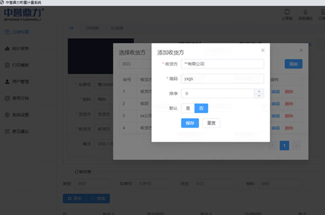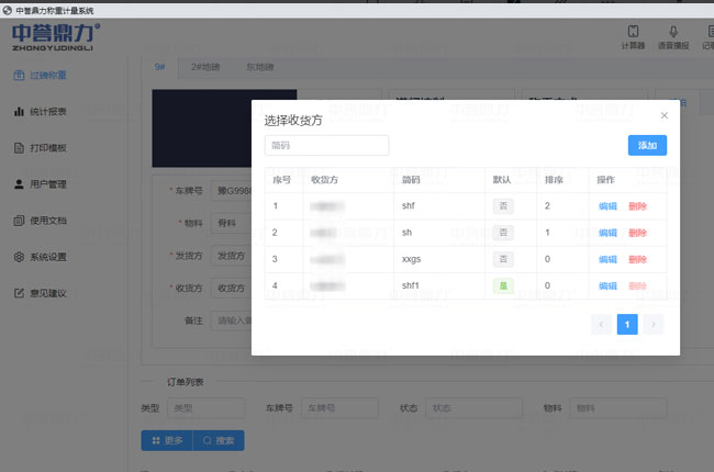 過(guò)磅稱(chēng)重系統(tǒng)添加收貨單位,在收貨方文本欄雙擊,即可更換或新增收貨方,簡(jiǎn)碼默認(rèn)為收貨方拼音首字母簡(jiǎn)拼,自動(dòng)生成,個(gè)根據(jù)需求設(shè)置排序方式,支持默認(rèn)項(xiàng)設(shè)置,操作更便捷。