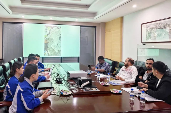 10月24日,來自印度、埃及和敘利亞的國外客戶來到中譽鼎力智能裝備廠區實地考察,裝備制造中心和市場客戶服務中心進行了產品、業務、服務等介紹。