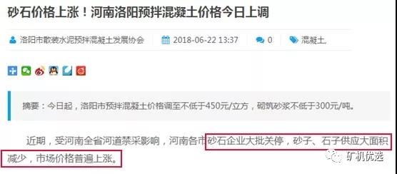 一、受環(huán)保影響,2017年的環(huán)保督查延續(xù)到今年,是近期“回頭看”行動(dòng)的展開(kāi),各地砂石廠紛紛關(guān)停整改,而公路、鐵路、機(jī)場(chǎng)、水利等基建項(xiàng)目卻依然火熱,供需不平衡導(dǎo)致砂石價(jià)格上漲,甚至不符合常理的海砂也開(kāi)始進(jìn)入建筑市場(chǎng),刺激了原材料價(jià)格的上漲。