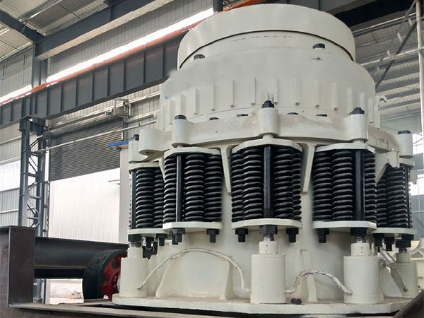 復合式破碎出料控制大小方法:1.動錐襯板的上下位置很多不變(其偏擺位移不計),出料口的大小由不變在上機架上的定錐襯板的上下位移來調改;2.主軸底部單缸液壓復合式破碎機的出料口尺寸調改是另一種辦法,不變在上機架內的定錐襯板的位置是不動的,主軸底部油缸主軸及動錐上下位移,形成動錐襯板與定錐襯板之間出料口尺寸的變化。