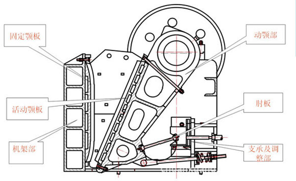 破碎機(jī)工作時(shí),電動(dòng)機(jī)轉(zhuǎn)動(dòng),通過(guò)三角皮帶、皮帶輪帶動(dòng)偏心軸,使動(dòng)顎按照已調(diào)整好的軌跡進(jìn)行運(yùn)動(dòng),活動(dòng)顎板對(duì)固定鄂板也作周期性的擺動(dòng),當(dāng)動(dòng)顎板靠近時(shí),物料在兩顎板間被擠壓、劈裂和彎曲破碎。當(dāng)動(dòng)顎板離開(kāi)時(shí),破碎腔內(nèi)下部已破碎到小于排料口的物料,靠自重作用自動(dòng)落下,位于破碎腔上部的物料,還未破碎到小于排料口尺寸,只是隨著排料而下降距離,直到動(dòng)顎再次靠迫固定顎板時(shí),破碎腔內(nèi)已下降的物料再次受到繼續(xù)擠壓而破碎;如此進(jìn)行下去,直到給入破碎腔內(nèi)部物料從排料口排出為止,終得到理想的物料。