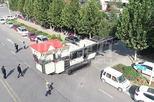 DLMC1512履帶破碎移動站運輸長度14620×3200×3693mm,側出土高度2000mm,主卸料高度3100mm,設備總功率353kw。