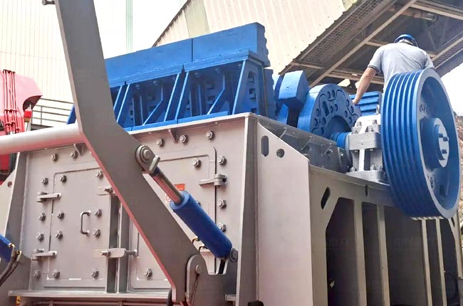 通過液壓系統調節篦架,可以改變出料大小,解決錘頭、篦板因磨損對出料粒型造成影響(調節定位篦架還配備了絲桿和螺母,解決液壓缸受力,延長使用壽命);