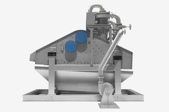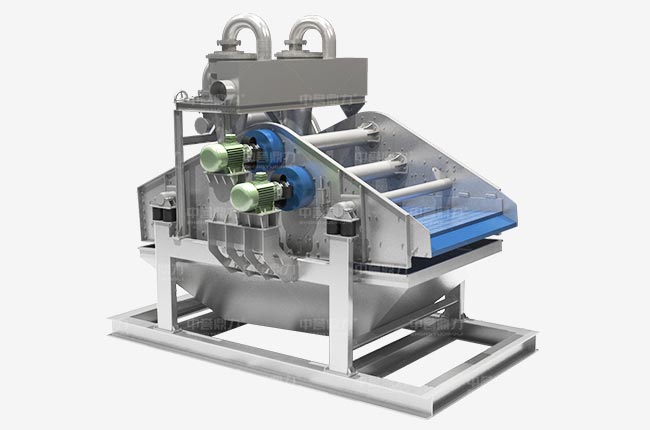 細沙回收脫水一體機工作時渣漿泵將篩水混合物輸送至旋流器,離心分級濃縮的細沙經沉沙嘴提供給脫水篩,脫水篩負責清洗、分級、脫水后,細沙、泥等經溢流水箱流入污水處理系統。