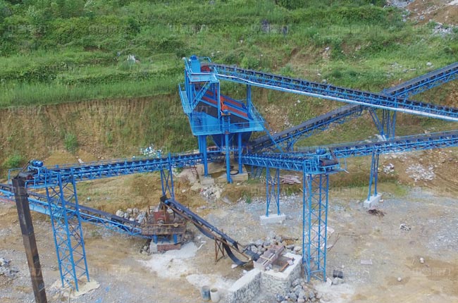 石灰?guī)r物料硬度不高,采用PCZ1512重錘式破碎機,時產(chǎn)量250-320噸,一次破碎成型,不需要二級設備的投資,從PCZ1512重錘式破碎機破碎出來的物料可直接進篩機篩分出3種不同規(guī)格的成品石料。此種工藝配置簡單,投資小。