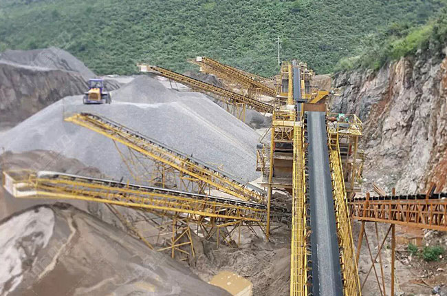 貴州惠水滿告時產1000噸砂石生產線是一條時產砂近600噸,其它各種粒度成品石子合計1000噸左右的砂石生產線,該條產線主要配置的設備有ZG1550型振動給料機、PCZ1615重錘破2臺、ZSJ1218雙轉子整形制砂機、2YK2460振動篩8臺以及皮帶輸送器和相關除塵設備等。
