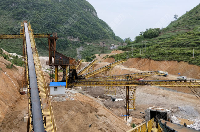 該條小型砂石料生產(chǎn)線的生產(chǎn)能力在200-250噸/時(shí),是2018年3月開始承建,5月底建成投產(chǎn),為破碎+制砂型砂石生產(chǎn)線。