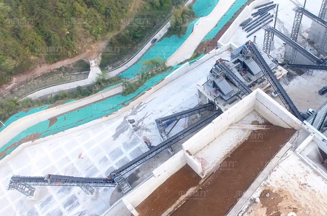 該封閉式砂石料場(chǎng)雙線并行,兩臺(tái)DLZG振動(dòng)給料機(jī)、兩臺(tái)DLPCZ重型錘式反擊破碎機(jī)、兩臺(tái)DLPC整形式破碎機(jī)和多臺(tái)DLYKZ重型振動(dòng)篩及配套輸送、除塵等設(shè)備。