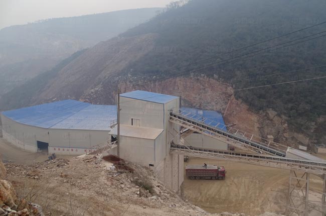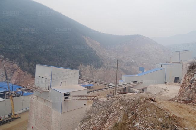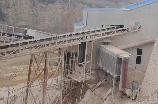 湖北荊門這條時產500噸中小型砂石料生產線,2015年投產,選用PC1220整形式破碎機及配套設備,生產線石料加工設備均在密閉環境下,還配有除塵器收集粉塵。