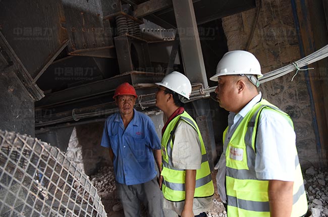 2017年8月鼎力售后萬里行來到楓林采石場溝通生產線運營情況