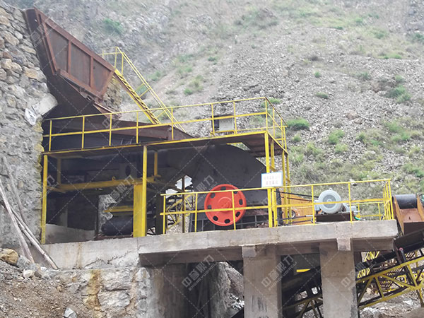 當(dāng)原料中土含量較多或原料較粘時,則需考慮將給料機(jī)篩條間尺寸稍調(diào)大些,大部分含土(塊)廢料經(jīng)篩分后再經(jīng)過一臺篩土圓振動篩將其篩干凈,篩土圓振動篩的篩上石料可重新進(jìn)入二級破碎機(jī)破碎。