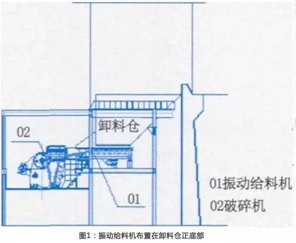 圖2:振動給料機布置在卸料倉底部外側(cè)