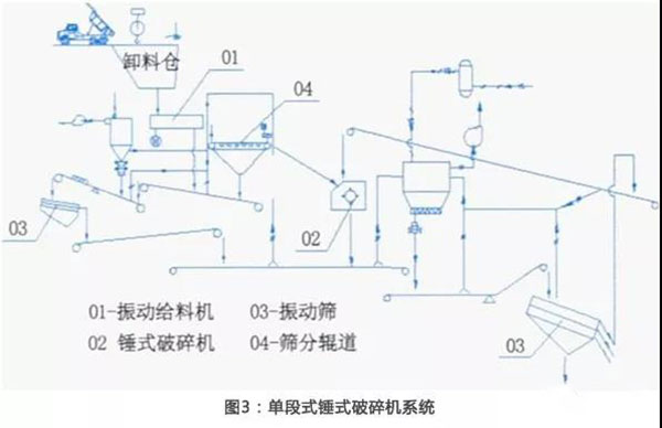 a) 當系統(tǒng)能力要求較大時需要三級破碎或者較多臺破碎機,此時流程復(fù)雜,項目投資高;