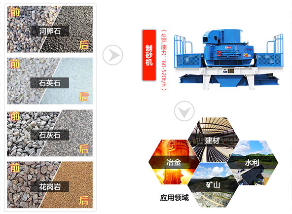 3、VSI立軸細碎機設備:經(jīng)過處理能力大,價格適中,產能:60-520噸/時。