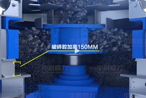 破碎腔加高150mm,對(duì)機(jī)制砂起到整形作用,粒型更優(yōu)。