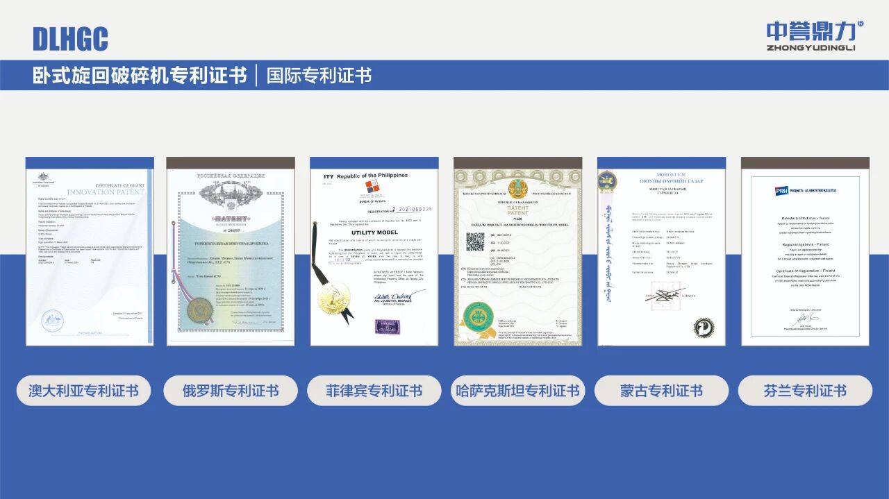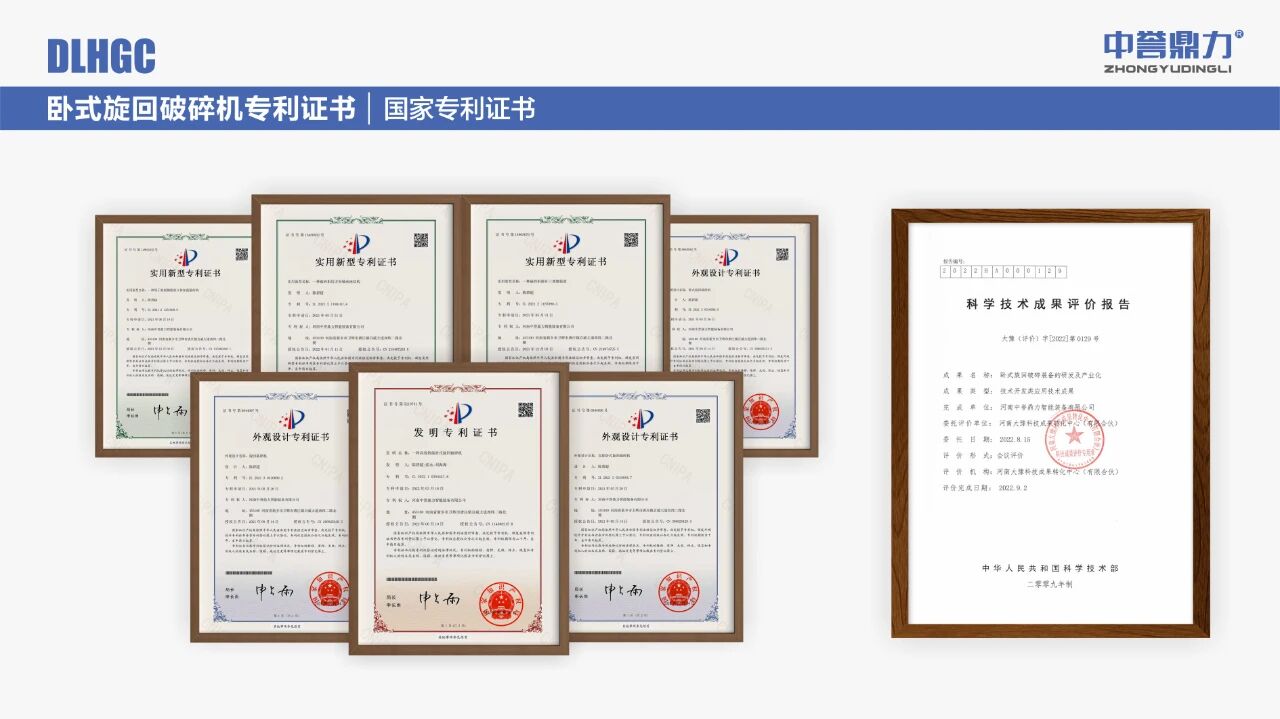 中譽(yù)鼎力臥式旋回破碎機(jī)不僅先后獲得1項(xiàng)科學(xué)技術(shù)成果、多項(xiàng)國(guó)家專利【[發(fā)明專利(ZL 2022 1 0254447.6)] 一種高效智能臥式旋回破碎機(jī);[外觀專利(ZL 2021 3 0316696.X)] 臥式旋回破碎機(jī);[外觀專利(ZL 2021 3 0316696.X)] 雙腔臥式旋回破碎機(jī);[實(shí)用新型(ZL 2021 2 1351908.8)] 一種用于機(jī)架側(cè)板的立體加強(qiáng)筋結(jié)構(gòu);[實(shí)用新型(ZL 2021 2 1187890.3)] 一種破碎機(jī)排礦口調(diào)整裝置;[實(shí)用專利(ZL 2021 2 1188187.4)]一種破碎機(jī)用方形軸承座結(jié)構(gòu)】和6項(xiàng)國(guó)際專利(查看國(guó)際專利)。