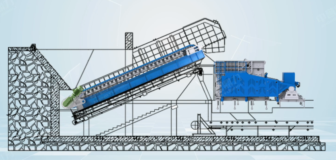 從工藝設(shè)計(jì)角度來(lái)說(shuō),傳統(tǒng)旋回破進(jìn)料模式無(wú)喂料裝置,對(duì)于較大物料的滑落較為不利,對(duì)原料的堵塞需要更多的應(yīng)對(duì)時(shí)間。而臥式旋回破與振動(dòng)給料機(jī)或板喂機(jī)搭配,可以減少此類問題的發(fā)生以及實(shí)現(xiàn)快速處理。