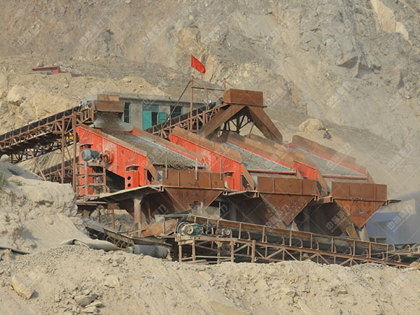 適中的頻率,將使石子有時間落到所要落到的位置,石子將能地被頂住,取得更的擊打力,半臥式V形結構中石子的下落將慢于正V形的結構,因此在振動頻率上,應低于正V形的結構,正V形的結構的激振頻率,通常在1500~3000之間,從落料速度的影響思考,V形臥式結構型式,激振頻率應在1200~1800 n/min為宜。