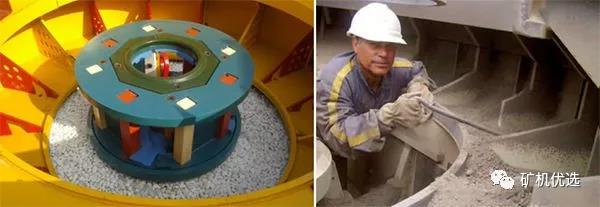 PCL沒有散料錐裝置,工作原理是采用“石打石”原理完成機制砂功能的,VSI配有散料錐(盤)裝置,可以根據用戶石料整形或制砂的需要,通過調節進入葉輪和渦流腔中的物料的比例,簡單就能實現石料整形和制砂的功效,達到一機多用的功效。